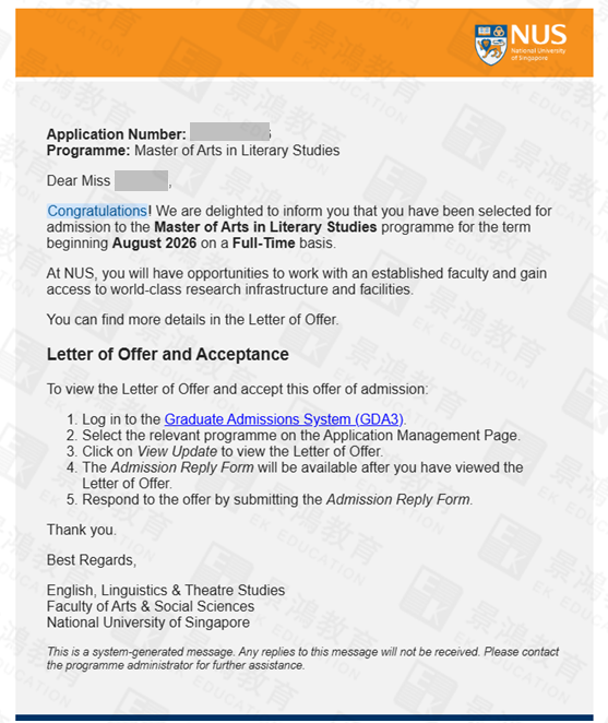 - 录取院校:新加坡国立大学
